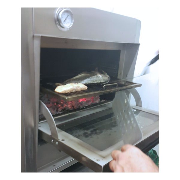Φούρνος με κάρβουνα είναι ένας συνδυασμός ψησταριάς φούρνου και χρησιοποιείται απο τους πιο σύγχρονους σεφ στον κόσμο, διότι χαρίζει ξεχωριστές γεύσεις και αυξάνει την παραγωγικότητα της κουζίνας σε ποσότητα και ποικιλία προϊόντων. Ιδανικός για το ψήσιμο όλων των φαγητών κόκκινο κρέας, κοτόπουλο, ψάρι, θαλασσινά, μακαρονάδες, λαχανικά, πίτσες, ψωμί κ.α. Λειτουργεί με 40% λιγότερο κάρβουνο απο μια ανοιχτή ψησταριά. Ποιότητα στο χώρο εργασίας Αποτρέπει την άμεση έκθεση του μάγειρα σε υψηλές θερμοκρασίες. Συγκέντρωση της στάχτης σε συρτάρι κάτω απο το φούρνο για ευκολότερο καθαρισμό. Είναι 30-40% πιο γρήγορος απο μια κλασική ψησταριά. Λειτουργεί με 40% λιγότερο κάρβουνο απο μια ανοιχτή ψησταριά. Είναι η μαγειρική συσκευή που λείπει από κάθε επαγγελματικό χώρο εστίασης όπως bistro cafe, εστιατόρια, μεζεδοπωλεία, ταβέρνες, ξενοδοχεία κτλ The charcoal oven is a combination of an open barbeque with an oven and it is being used by the most specialized chefs around the world because it gives a unique flavor to all kinds of food while at the same time increases the kitchen productivity. Its high operating temperature makes it ideal for grilling and roasting all kinds of food meat, chicken, fish, pasta, bread, vegetables, pizza ecc. It is the cooking appliance that all food-service establishments like traditional restaurants, taverns,hotels, bistro-cafes ecc. need to have. It is a combination of a charcoal grill with an oven which gives the possibility to produce many different dishes for which two appliances might be needed. Cleaning has never been easier thanks to the ash collection drawer below the oven. Its unique design also protects the chef from being constantly exposed to high temperatures. It is 30% to 40% faster than an open traditional grill. The charcoal consumption is lower. It consumes about 40% less charcoal than an open grill.