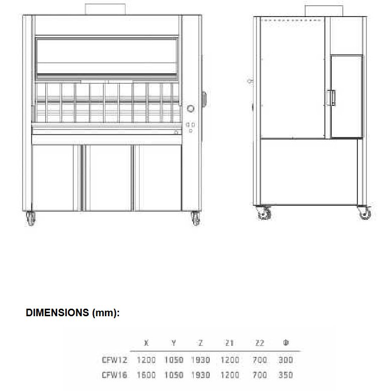 The ROASTER C Wood & Charcoal Chicken Rotisserie is a closed type rotating rotisserie. There are 6 rotating spits and it operates with a heavy-duty motor 220V/60 Watt. There is a fireproof glass door and 3×40 Watt lamps for better illumination. It is made from stainless steel AISI 304.