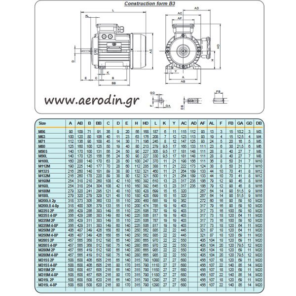 Διαστάσεις ηλεκτροκινητήρων.