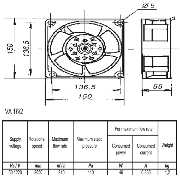 Ανεμιστήρες υψηλής θερμοκρασίας. Με ρουλεμάν κύλισης Αξονικού τύπου Ανεμιστήρας ψύξης Ιδανικό για μεταφορά θερμού αέρα Αντοχή στη θερμοκρασία έως 120 C Εγγύηση 30.000 ώρες στα ρουλεμάν. Εξαεριστήρας υψηλής θερμοκρασίας ΤΥΠΟΣ / m3/h / rpm / Pa / w BA 9/2 / 60 / 2500 / 50 / 16 BA 12/2 / 150 / 2650 / 75 / 18 BA 14/2 / 205 / 2650 / 85 / 42 BA 16/2 / 240 / 2650 / 110 / 46 High-temperature fans. With ball bearings. Axial type. Cooling fan. Ideal for transferring hot air. Temperature resistance up to 120°C. 30,000 hours warranty on the bearings. High-temperature ventilator TYPE / m3/h / rpm / Pa / w BA 9/2 / 60 / 2500 / 50 / 16 BA 12/2 / 150 / 2650 / 75 / 18 BA 14/2 / 205 / 2650 / 85 / 42 BA 16/2 / 240 / 2650 / 110 / 46"