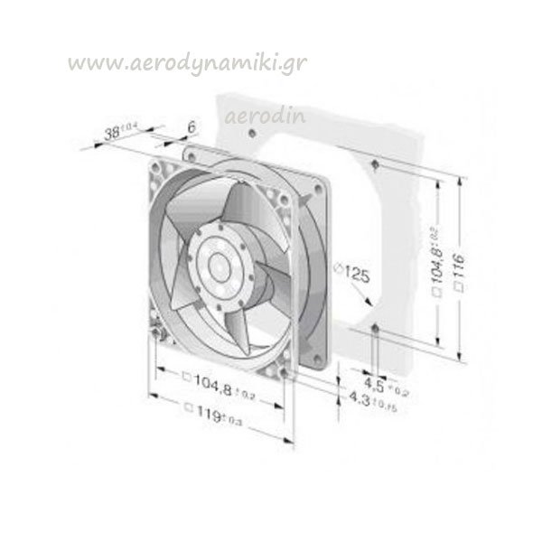 Ανεμιστήρας με μεταλλική φτερωτή ebmpapst Παροχή : 160 m3/h Θερμοκρασία Λειτουργίας : -40 oC +85 oC 230V - 50Hz - 47 dB - 19W - 2.650RPM Fan with metal blades by ebmpapst Airflow: 160 m3/h Operating Temperature: -40°C to +85°C 230V - 50Hz - 47 dB - 19W - 2,650 RPM