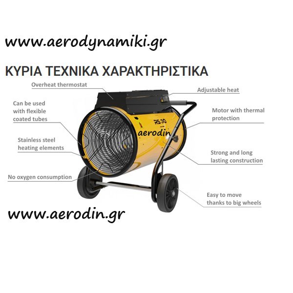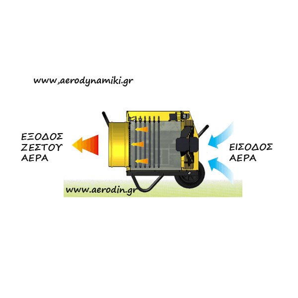 ΗΛΕΚΤΡΙΚΟ ΑΕΡΟΘΕΡΜΟ Κατάλληλο για καφέ, μπάρ, εστιατόρια, ταβέρνες, βιομηχανικούς χώρους και σε χώρους κλειστούς με νάυλον και τζαμαρίες. Δυνατότητα σύνδεσης με εύκαμπτο σωλήνα θερμού αέρα Δυνατότητα σύνδεσης με θερμοστάτη χώρου Ευκολία στην μετακίνηση χάρη στις μεγάλες ρόδες που διαθέτει Χωρίς κατανάλωση οξυγόνου Χωρίς καπνούς, χωρίς μυρωδιές, χωρίς υγρασία Χαμηλή στάθμη θορύβου Χειροκίνητη επαναφορά 100% Απόδοση Μοτέρ με θερμική προστασία Θερμαντικά στοιχεία από ανοξείδωτο χάλυβα Προστασία υπερθέρμανσης Δυνατότητα ρύθμισης της θερμοκρασίας του θερμού αέρα Βαριά και μακράς διαρκείας κατασκευή Ισχύς:13 / 26 / 40 kW 44.350/88.700 / 136.500 Btu/h 11.180/22.360 /34.400 Kcal/h Παροχή αέρα: 3.100 m3/h Διαστάσεις (l x w x ht) 870 x 630 x 770 mm Παροχή Ρεύματος: 380-400/50 V/Hz Διακόπτης θέση 1- Ανεμιστήρας Διακόπτης θέση 2- 13 KW Διακόπτης θέση 3- 26 KW Διακόπτης θέση 4- 40 KW Καθαρό / Μικτό βάρος: 46,0 / 52,0 kg Έλεγχος με θερμοστάτη: ενσωματωμένος Δείκτης Αντοχής:IP20