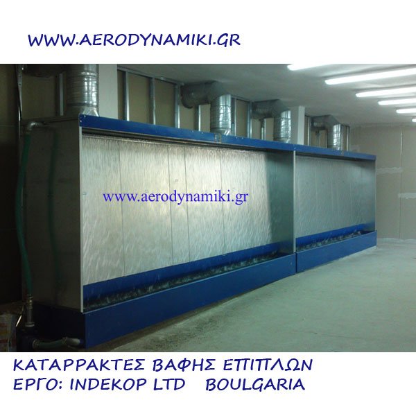 Εγκατάσταση συστήματος βαφής με καταρράκτη νερού.